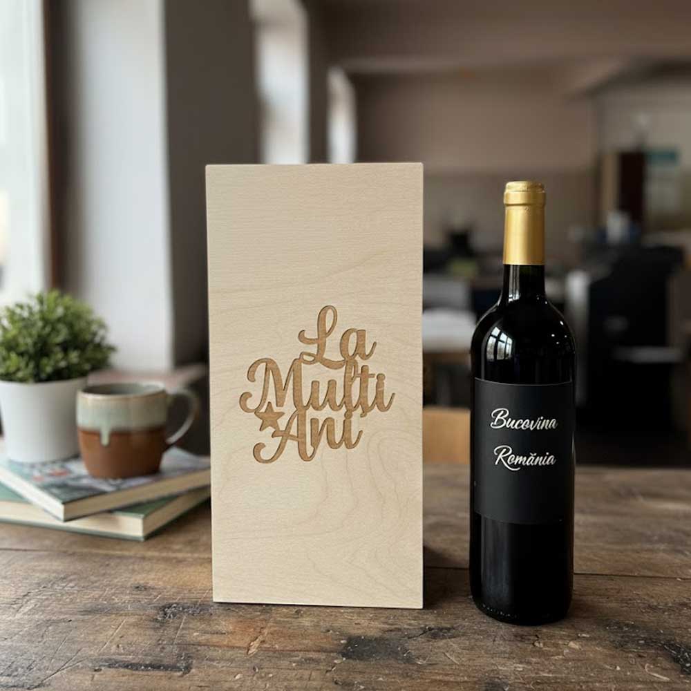 Cutie de Vin Personalizată „La Mulți Ani” – Lemn Natural Premium