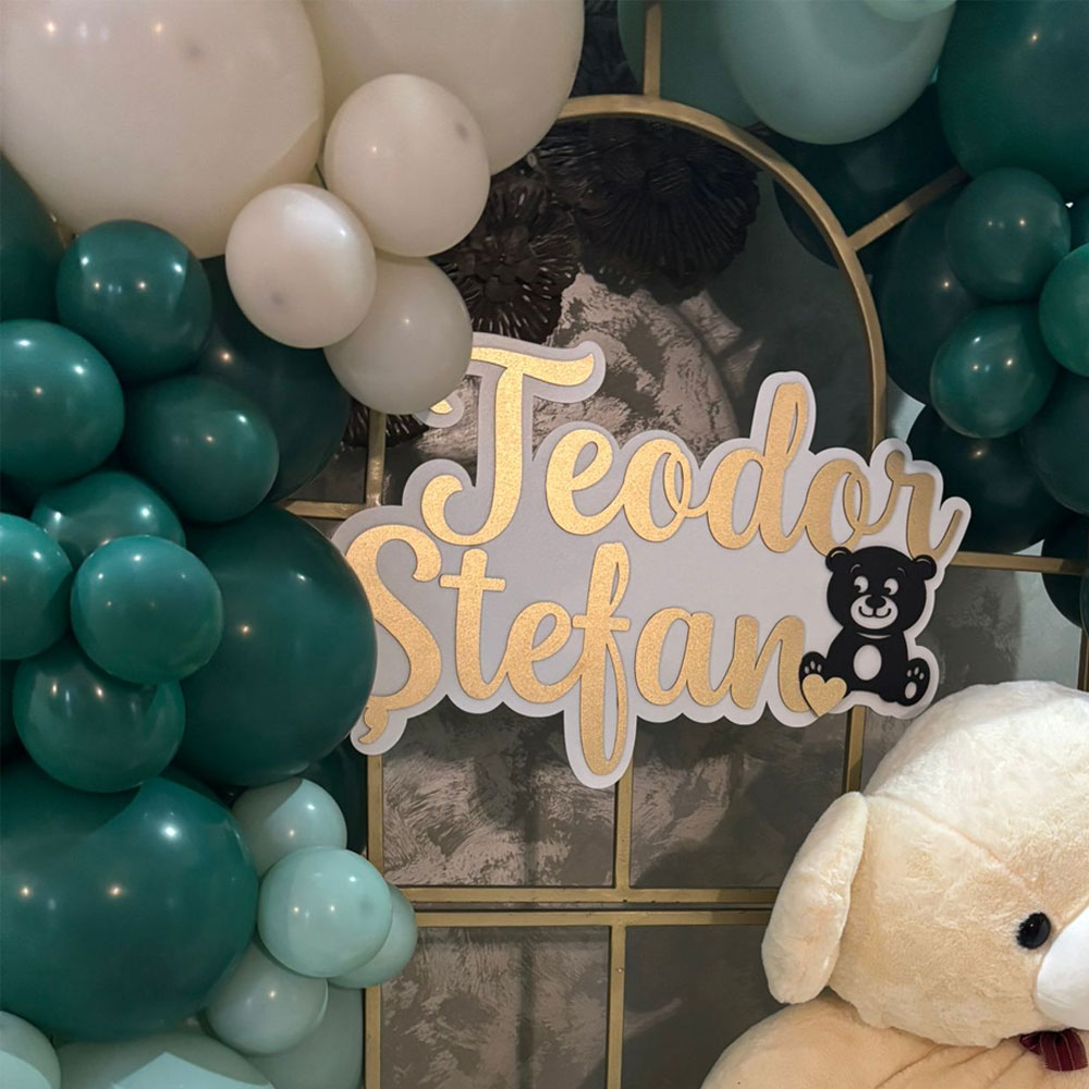 Atât numele, cât și layerul de fundal pot fi vopsite în orice culoare la alegerea clientului, pentru a se potrivi tematicii botezului sau decorului camerei copilului. Pentru un plus de farmec, se pot adăuga elemente decorative personalizate – fluturași, ursuleți, îngerași, inimioare sau alte detalii care reflectă stilul dorit.